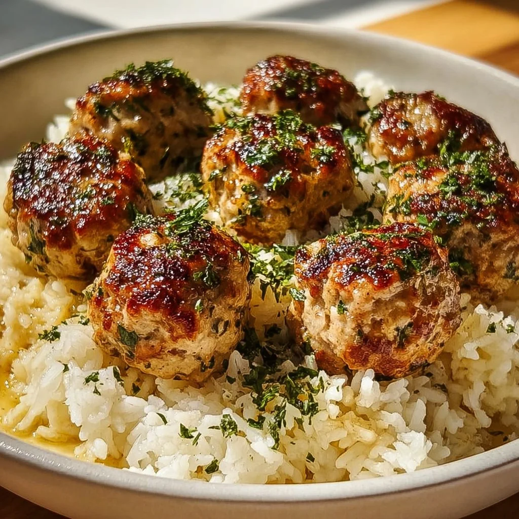 Greek Turkey Meatballs with Lemon Herb Rice