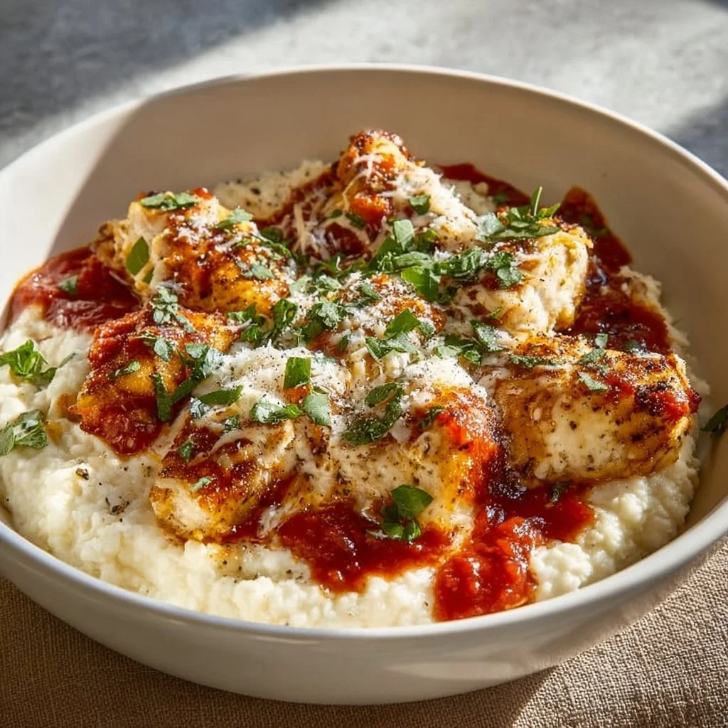 High Protein Chicken Parm Cottage Cheese Bowl
